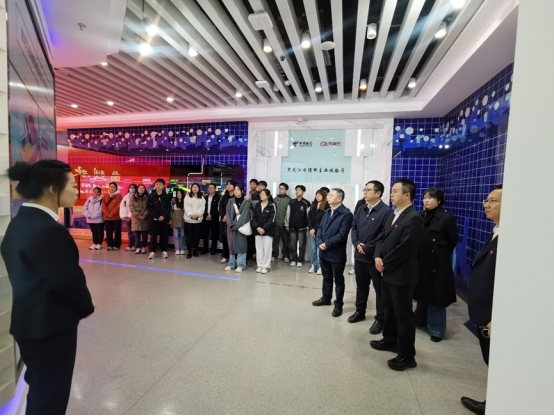 A delegation from the School of Mathematical Sciences visited the China Telecom Centennial Development Exhibition Hall, where they experienced over 20 advanced technological innovations, including quantum encrypted communication, TianTong satellite communication, cloud-based auditing Wi-Fi, medical imaging cloud, XiRang Research Assistant, smart canteen, and Tianyi Cloud VR. The two parties conducted a scholarly discussion on the profound integration of mathematical foundational research with quantum information and communication technologies, and formalized the establishment of the "Quantum Joint Laboratory."